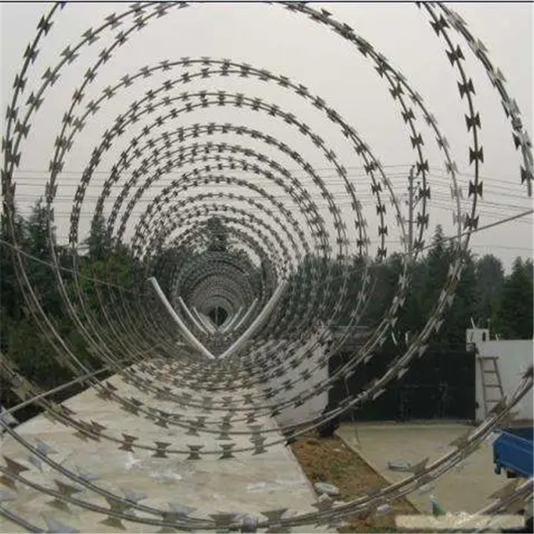 通常刀刺網(wǎng)支架焊有與拉絲連接的L型鐵鉤,底座與圍墻連接采用200*200mm鋼板,大大的增強了支架與墻體的牢固度。通常V型支架里外均采用熱浸鋅處理,使支架的防腐效果更好。也可用304不銹鋼材質,這樣使用壽命更長。
