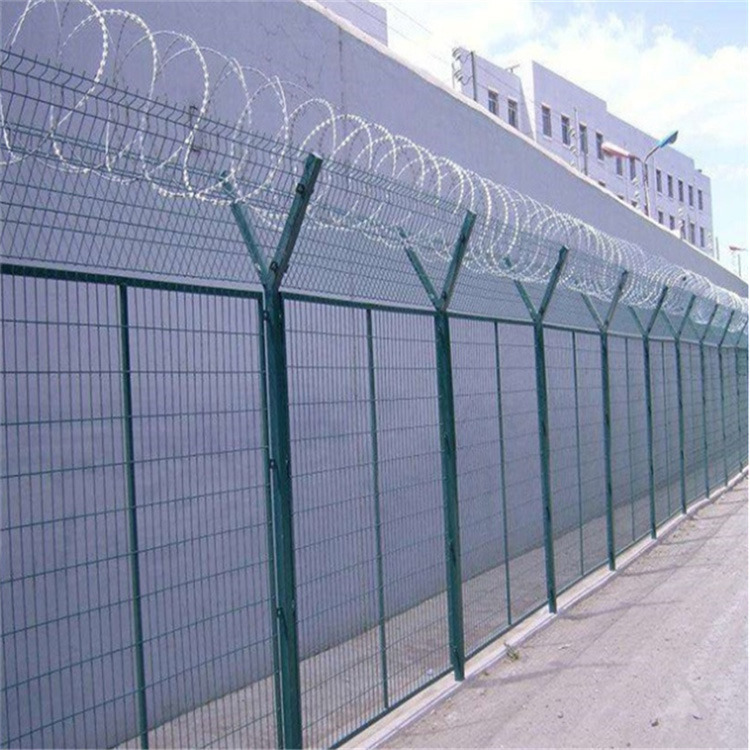 看守所隔離網(wǎng)立柱的規(guī)格采用優(yōu)質(zhì)國標(biāo)鋼管制作,常用規(guī)格為60mm*60mm、60mm*80mm、80mm*80mm、100mm*100mm方管或者直徑為Φ60mm、Φ75mm、Φ88mm、Φ114mm圓管。通常采用Y字型立柱,這種造型是為了方便在頂部架設(shè)刀片刺網(wǎng),刀片刺網(wǎng)的刀片非常鋒利,即使犯罪分子爬到護欄網(wǎng)上邊也是無法翻越的,只要觸摸到就會被刺傷,這種組合模式可以大大提高監(jiān)獄隔離網(wǎng)的安全防護性能。