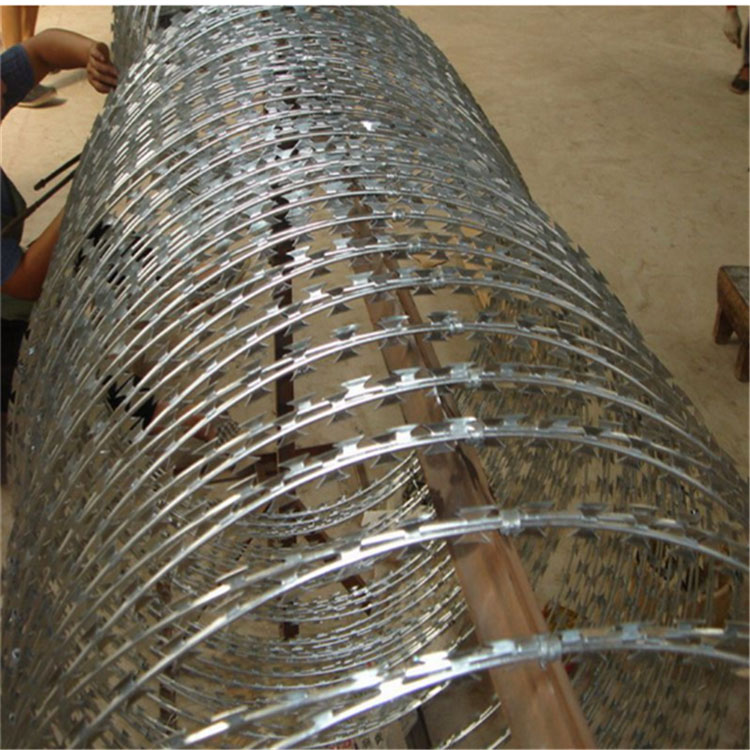 焊接型刀片刺繩網片是先把刀片刺繩成型之后裁成所需網…