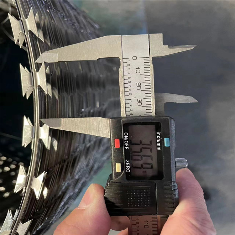 生產(chǎn)步驟:第一步是沖床沖壓(也成沖軋),也就是將原材料進行加工,加工成刀片的形狀。第二步是包絲,將第一步?jīng)_軋出來的刀片板條,包裹到熱鍍鋼絲、鐵絲或者是不銹鋼絲上,這時就形成了半成品的刀片刺繩。在這一步中刀片刺繩也被盤成了客戶定制的直徑和圈數(shù)的卷。第三步是卡扣,將盤成圈的刀片刺繩卡上卡扣。最后經(jīng)過壓縮打包就可發(fā)貨啦。