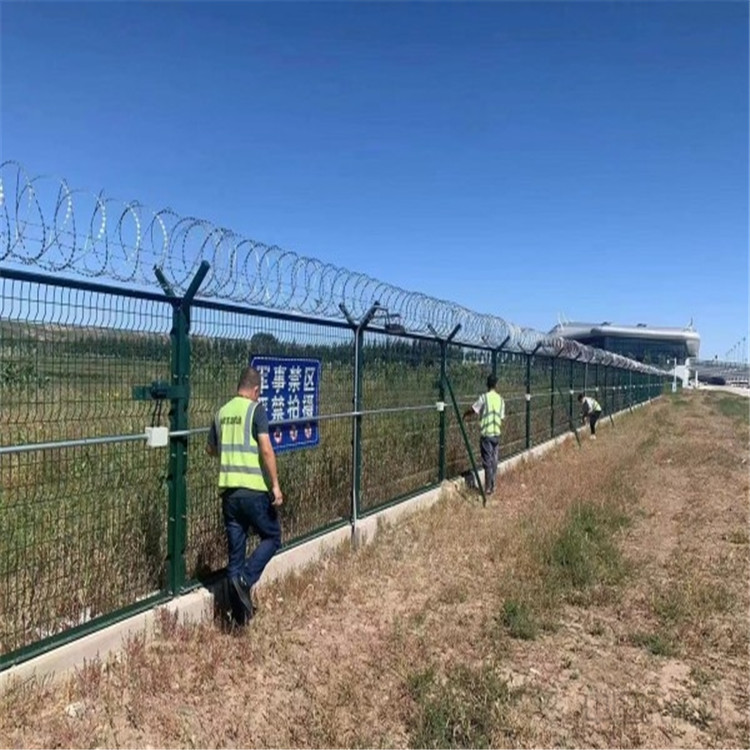 工程案例機(jī)場(chǎng)護(hù)欄網(wǎng)又稱(chēng)作“Y型安全防御護(hù)網(wǎng)”,是由折彎網(wǎng)片,V型支架立柱,加強(qiáng)型焊接片網(wǎng),在防護(hù)網(wǎng)的橫向加裝四道折彎加強(qiáng)筋,在整體成本增加不多的同時(shí),使網(wǎng)面強(qiáng)度和美感顯著增加。Y型安全防御護(hù)網(wǎng)上面有刀片刺繩、安全防盜連接件組成強(qiáng)度和安全防御性級(jí)別很高。被廣泛應(yīng)用在機(jī)場(chǎng),基地等安全場(chǎng)所。