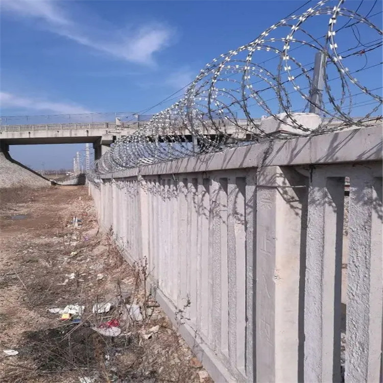 工程案例鐵路刺絲滾籠主要包括刀片剌網(wǎng),刺繩,和支架等.安裝好后具有很好的阻嚇效果,與能起到相同作用的產(chǎn)品比起來性價比是高很多的.主要制作工藝就是由熱鍍鋅鋼板或者不銹鋼鋼板沖壓出尖銳的刀片,然后由高張力鍍鋅鋼絲或者不銹鋼絲來做芯線組合構(gòu)成的防護產(chǎn)品。刀片刺繩由沖切鋼板采用機械壓軋在鋼絲上成型,刀刺寬度22mm,兩刃垂直間距15mm,刀刺縱向間距34mm,芯絲直徑為2.5mm。刀片采用厚度0.5mm的Q195鋼板沖切制作,芯絲由HPB300?6.5mm高線鋼絲加工。