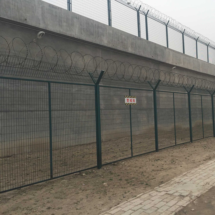 監(jiān)獄鋼網(wǎng)墻又稱作“Y型安全防御護網(wǎng)”,是由V型支架立柱加強型焊接片網(wǎng),安全防盜連接件和熱鍍鋅刀片刺網(wǎng)組成強度和安全防御性級別很高。被廣泛應(yīng)用在監(jiān)獄,軍事基地等高安全場所。