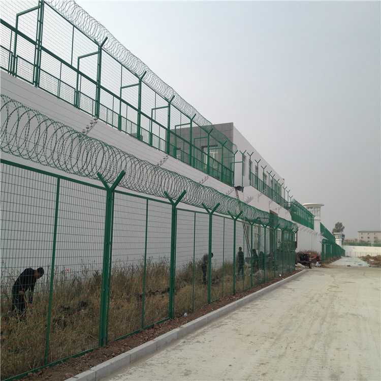 監(jiān)獄圍墻隔離網(wǎng)的高度一般為2米和2.5米,安裝在圍墻上方的隔離網(wǎng)高度不用特別高,滿足防御需要就可以。