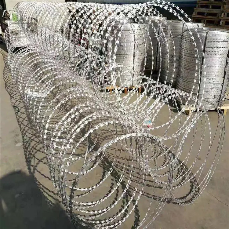 新聞動(dòng)態(tài)蛇腹式刀刺網(wǎng)( 也叫螺旋式刀刺網(wǎng)),我們簡(jiǎn)稱(chēng)刀刺網(wǎng)。常用材質(zhì):熱鍍鋅,不銹鋼304。目前我國(guó)的絕大部分監(jiān)獄已經(jīng)淘汰了熱鍍鋅刀刺網(wǎng),選用不銹鋼304材質(zhì),解除了兩年一銹一年一換的后顧之憂,高鐵上面用的刀片刺繩用的是直徑500毫米的,拉開(kāi)間距為20公分,表面進(jìn)行熱鍍鋅處理,一般環(huán)境用120克上鋅量,特殊環(huán)境用鍍鋅量270g的。