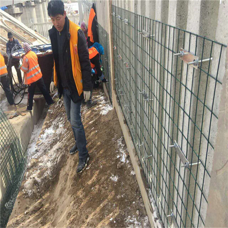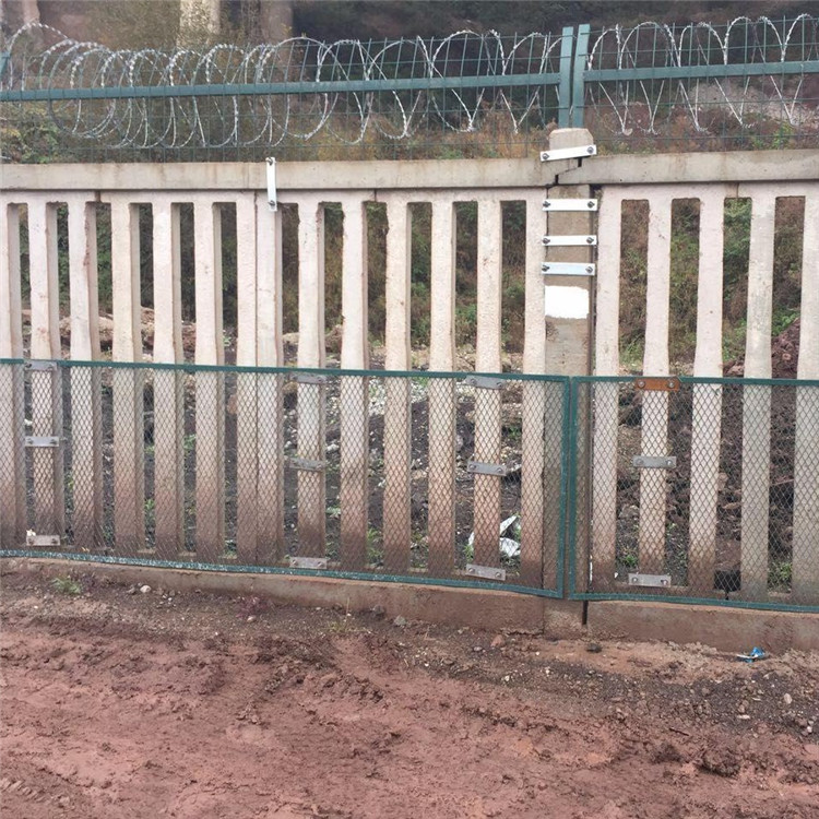 鐵路加密網(wǎng)格網(wǎng)長度根據(jù)防護柵欄單元長度確定,編織鋼采用熱鍍處理。直為2.2mm,鐵路加密網(wǎng)又叫格柵網(wǎng),四周采用扁鋼焊接加固,扁鋼為3mmX14m,格網(wǎng)應進行浸塑處理,格網(wǎng)設于柵欄內側(靠近鐵路側),采用U型螺把加密網(wǎng)捆于欄欄片上,U型寬、長應根據(jù)欄片截面尺寸而定,一般總長380mm,螺母于欄內側。整個連接構件表面做防腐處理。格柵網(wǎng)底部應與下檻頂面密貼,兩端部應與立柱側面密貼。