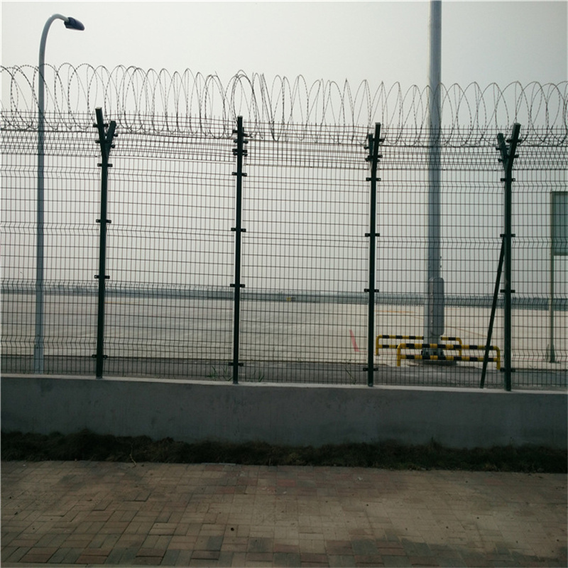 新聞動(dòng)態(tài)機(jī)場(chǎng)護(hù)欄網(wǎng)主要用V型支架立拄,加強(qiáng)型焊接片網(wǎng),安全防盜連接件和熱鍍鋅刀片刺籠組成強(qiáng)度和安全防御性級(jí)別很高.近年來,被廣泛應(yīng)用在機(jī)場(chǎng),軍事基地等高安全場(chǎng)所.注:如果在機(jī)場(chǎng)護(hù)欄網(wǎng)頂部加裝刀片刺絲,刀片刺繩后又很好的增強(qiáng)了安全防護(hù)性能.采用電鍍,熱鍍,噴塑,浸塑等防腐形式,具有很好的抗老化,抗曬,耐候等特點(diǎn).其產(chǎn)品造型美觀,花色多樣,既起到圍欄作用,又起到美化作用.由于具有安全性高,防攀爬能力好,網(wǎng)片連接方式采用特制SBS緊扣件,有效防止人為的破壞性拆卸,橫向四道折彎加強(qiáng)筋,使網(wǎng)面強(qiáng)度顯著增加
