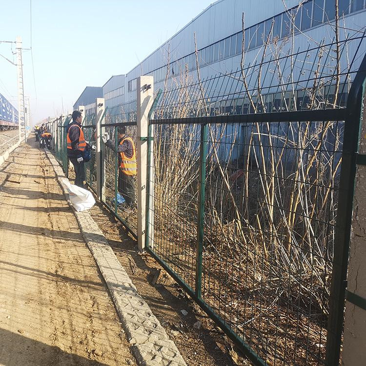 鐵路防護(hù)網(wǎng)安裝方法步驟:先用M10*142mm的螺栓穿過水泥立柱上預(yù)留的孔,同時用配套的防盜墊圈和螺母將兩個連接板A分別固定于混凝土立柱兩側(cè);再M10*22mm的螺栓,配相應(yīng)的防盜墊圈和螺母將連接板A和連接板B固定;調(diào)整金屬網(wǎng)片垂直、水平度,用專用工具講螺栓、螺母固定牢固即可。防護(hù)柵欄安裝時做到:嚴(yán)、齊、順、美,橋下封閉不得留有空隙,柵欄方向沿橋梁方向順直。 應(yīng)對柵欄兩側(cè)地面進(jìn)行平整壓實(shí),當(dāng)柵欄設(shè)置在坡地或柵欄兩側(cè)存在高低差時,應(yīng)將柵欄兩側(cè)范圍高出部分進(jìn)行平整,保證柵欄對于兩側(cè)地面均達(dá)到防護(hù)高度。