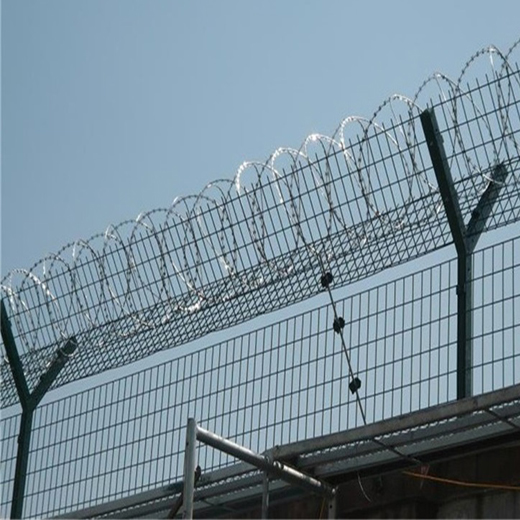 機(jī)場圍欄網(wǎng)由安全防盜連接件和熱鍍鋅刀片刺籠組成,是具有高強(qiáng)度和安全防御級(jí)別的隔離柵產(chǎn)品。近年來,機(jī)場圍欄網(wǎng)已被廠泛應(yīng)用于機(jī)場、軍事基地等高安全場所。在機(jī)場圍欄網(wǎng)的頂部加裝刀片刺絲、刀片刺繩,可有效增強(qiáng)安全防護(hù)性能。原料材質(zhì):采用國標(biāo)Q195低碳鋼冷拔絲、管等。