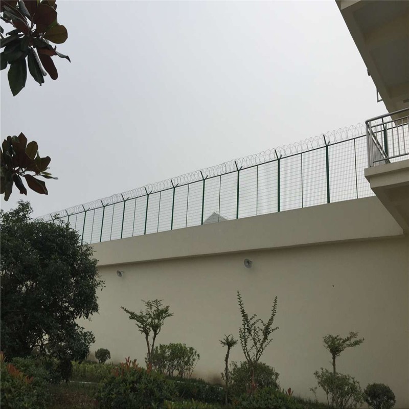 監(jiān)獄防攀爬護(hù)欄網(wǎng)主要分鍍鋅,浸塑兩種,是以立柱網(wǎng)片加刀片刺繩制作而成。