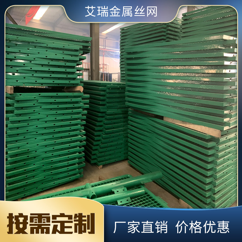 將銜接板、立柱以及法蘭盤全體焊接完進行熱鍍鋅和熱浸塑處理進行雙層防腐,起到抗風沙腐蝕、抗強光日曬的效果。正線防眩網色彩是草綠色,少量中心分隔帶、可移 動路段有黃色和藍色等。