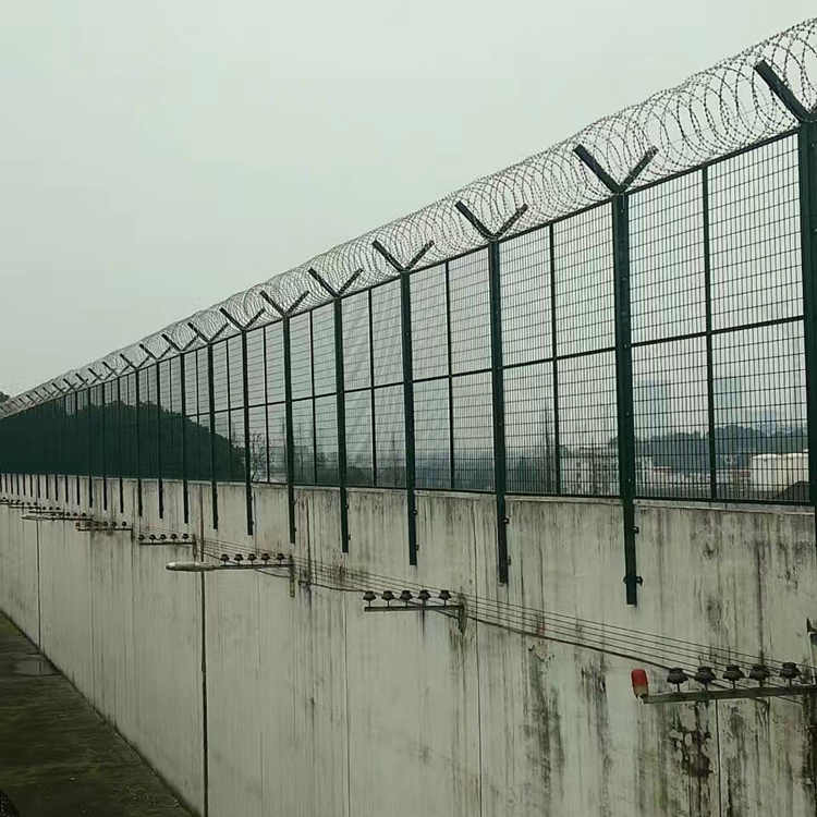 監(jiān)獄圍墻隔離網(wǎng)的高度一般為2米和2.5米,安裝在圍墻上方的隔離網(wǎng)高度不用特別高,滿足防御需要就可以。
