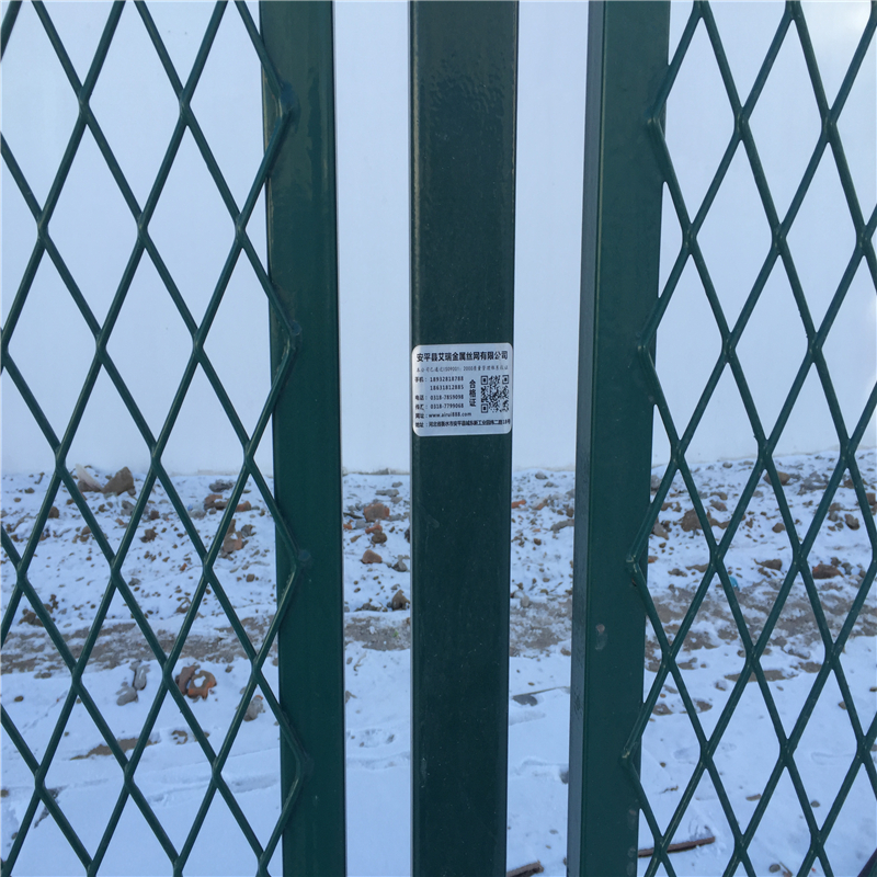 生產(chǎn)工藝:材質(zhì):Q235碳鋼.網(wǎng)孔:50*100mm.70*150mm.絲徑:3.8mm-5mm.管徑:48*48*1.5mm.60*60*2mm等規(guī)格。表面處理:先鍍鋅,在PVC浸塑.顏色自選,亮麗大方.