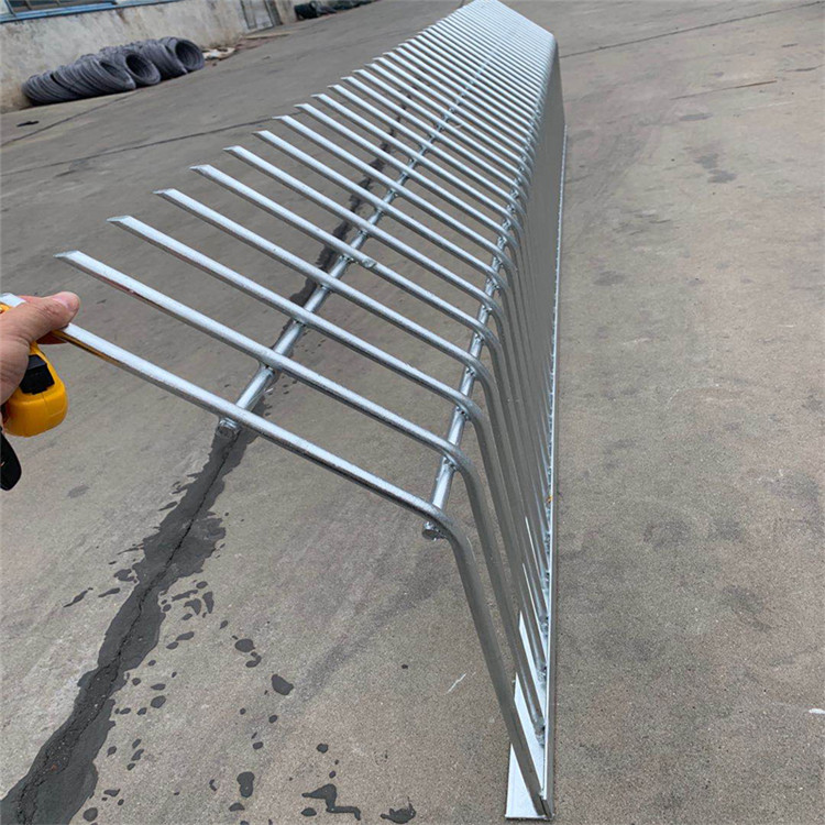 1.防爬刺高為70-120cm,安裝在柵欄上部,倒刺上部30cm向外折角45°;