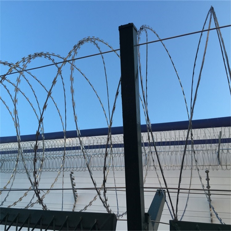 新聞動(dòng)態(tài)監(jiān)獄隔離網(wǎng)用于監(jiān)獄圍墻加高及圍墻內(nèi)外,監(jiān)獄圍墻內(nèi)外高度一般選用高度4.5米的,圍墻頂部常用為2米或者2.5米。我們平時(shí)見到的監(jiān)獄隔離網(wǎng)都是用在圍墻武警巡邏道上或者內(nèi)外墻5米-10米的位置。這些隔離網(wǎng)的頂部都需要加裝蛇腹形刀刺網(wǎng),這個(gè)設(shè)計(jì)主要是在隔離網(wǎng)這層防攀爬效果的基礎(chǔ)上面,再多一道‘安全墻’,這種刀刺網(wǎng)都是利用鋼板沖出刀片來,用專制卡扣固定在一起。兩個(gè)圈用卡扣固定,這樣拉伸開才是連貫一圈一圈固定在一起。刀刺網(wǎng)具有可以在一定范圍內(nèi)自由拉伸覆蓋距離的特點(diǎn)。