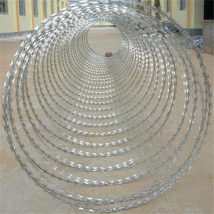 新聞動態(tài)刀片刺繩又叫蛇腹形(型)刀刺網(wǎng)或螺旋型交叉刀片刺網(wǎng),由沖切鋼板采用機械壓軋在鋼絲上成型,刀刺寬度22mm,兩刃垂直間距15mm,刀刺縱向間距34mm,芯絲直徑為2.5mm。刀片采用厚度0.5mm的Q195鋼板沖切制作,芯絲由HPB300?6.5mm高線鋼絲加工??纱钆渲Ъ茉趪鷫ι鲜褂?,也可架設在隔離網(wǎng)上,鐵路、邊防使用率也很高。也可以拉直焊接成網(wǎng)片使用,長度和寬度可以根據(jù)客戶需求進行制作,一般常見的長度為2-3米,寬度為1.5米-2.5米。可以根據(jù)不同的用途搭配立柱合邊框進行自由組合。網(wǎng)孔可設計菱形或者方形,材質(zhì)常見的有不銹鋼、熱鍍鋅等,不同的材質(zhì)可根據(jù)環(huán)境和使用條件選擇。焊接刀片隔離網(wǎng)作為一種高效的防護設施,其產(chǎn)品規(guī)格和結(jié)構(gòu)特點的不同組合可以滿足不同的使用需求,適用于工廠、學校、軍事基地、機場、大型活動場地等各種需要防護的場所,是一種重要的安全配置。