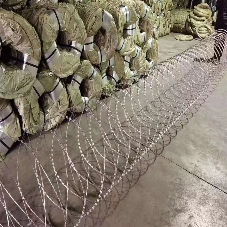 新聞動(dòng)態(tài)刀刺網(wǎng)是一種近年發(fā)展起來(lái)的防護(hù)、隔離能力較強(qiáng)的新型防護(hù)網(wǎng)產(chǎn)品。它采用鋼板沖壓成型包附于熱鍍鋅鋼絲之上,由鍍鋅鋼板或不銹鋼薄板做刀片,高張力鋼絲做芯線組合而成的。鋒利的刀型刺由雙線扣裝后成蛇腹?fàn)?,既美觀又讓人不寒而栗,起到了很好的阻嚇作用。