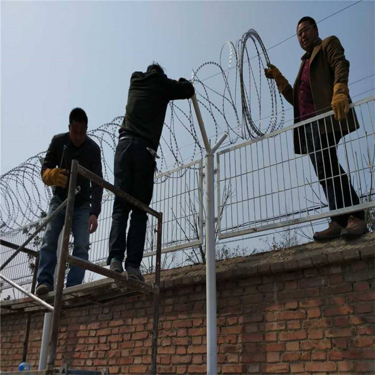 新聞動(dòng)態(tài)通常設(shè)定監(jiān)獄周界圍墻內(nèi)側(cè)5m、外側(cè)10m為警戒隔離帶,隔離帶內(nèi)應(yīng)無(wú)障礙,圍墻內(nèi)側(cè)5m、外側(cè)10m處均應(yīng)安裝一道高度為4米的防攀爬金屬隔離網(wǎng)墻和直徑600的蛇腹形刀刺網(wǎng)。這種防攀爬金屬隔離網(wǎng)墻統(tǒng)稱監(jiān)獄隔離網(wǎng)。監(jiān)獄隔離網(wǎng)主要由鋼鐵材料構(gòu)成,我們推薦使用具有高強(qiáng)度和耐腐蝕性能的鋼材。材料的選擇應(yīng)符合國(guó)家相關(guān)標(biāo)準(zhǔn),并能夠抵御外界的破壞行為。為了防止囚犯通過(guò)隔離網(wǎng)進(jìn)行攀爬和逃脫,關(guān)于采購(gòu)監(jiān)獄隔離網(wǎng)的一些建議,我們建議在隔離網(wǎng)上部安裝安全防護(hù)措施。這些防護(hù)措施可以采用密集的鐵絲網(wǎng)、玻璃纖維網(wǎng)或尖刺帶等材料,以增強(qiáng)隔離網(wǎng)的安全性。