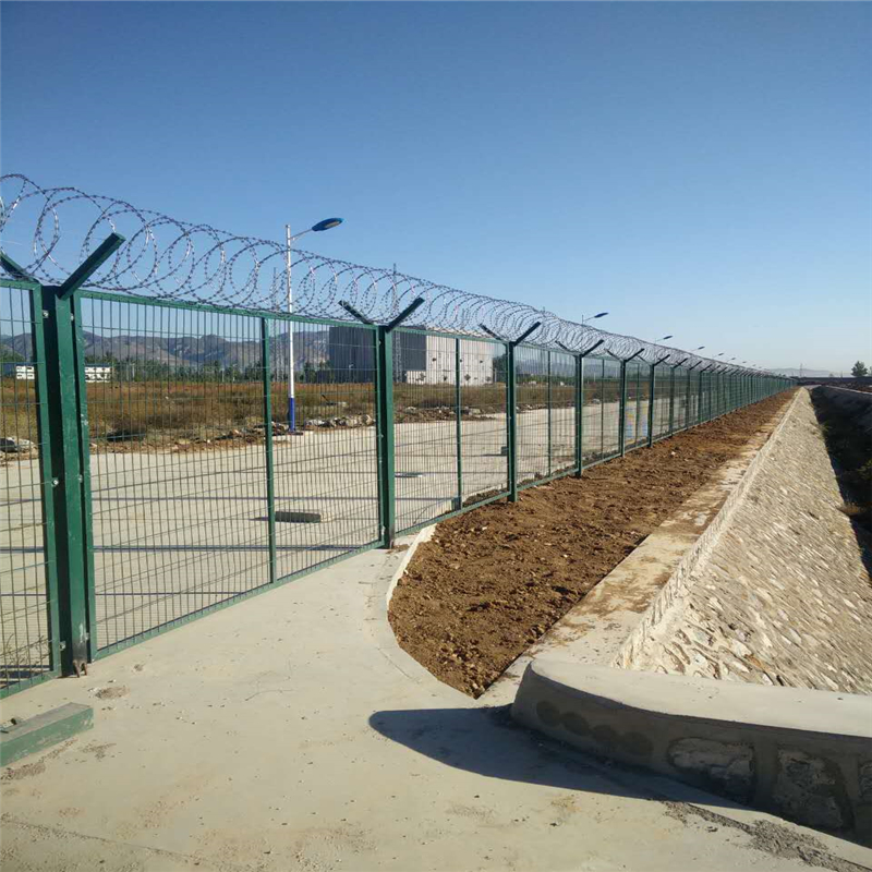 特點(diǎn):如果在機(jī)場(chǎng)圍界頂部加裝刀片刺絲、刀片刺繩后又很好的增強(qiáng)了安全防護(hù)性能。采用電鍍、熱鍍、噴塑、浸塑等防腐形式,具有很好的抗老化、抗曬、耐候等特點(diǎn)。其產(chǎn)品造型美觀、花色多樣,既起到圍欄作用,又起到美化作用。由于具有安全性高、防攀爬能力好,網(wǎng)片連接方式采用特制SBS緊扣件,有效防止人為的破壞性拆卸,橫向四道折彎加強(qiáng)筋,使網(wǎng)面強(qiáng)度顯著增加。
